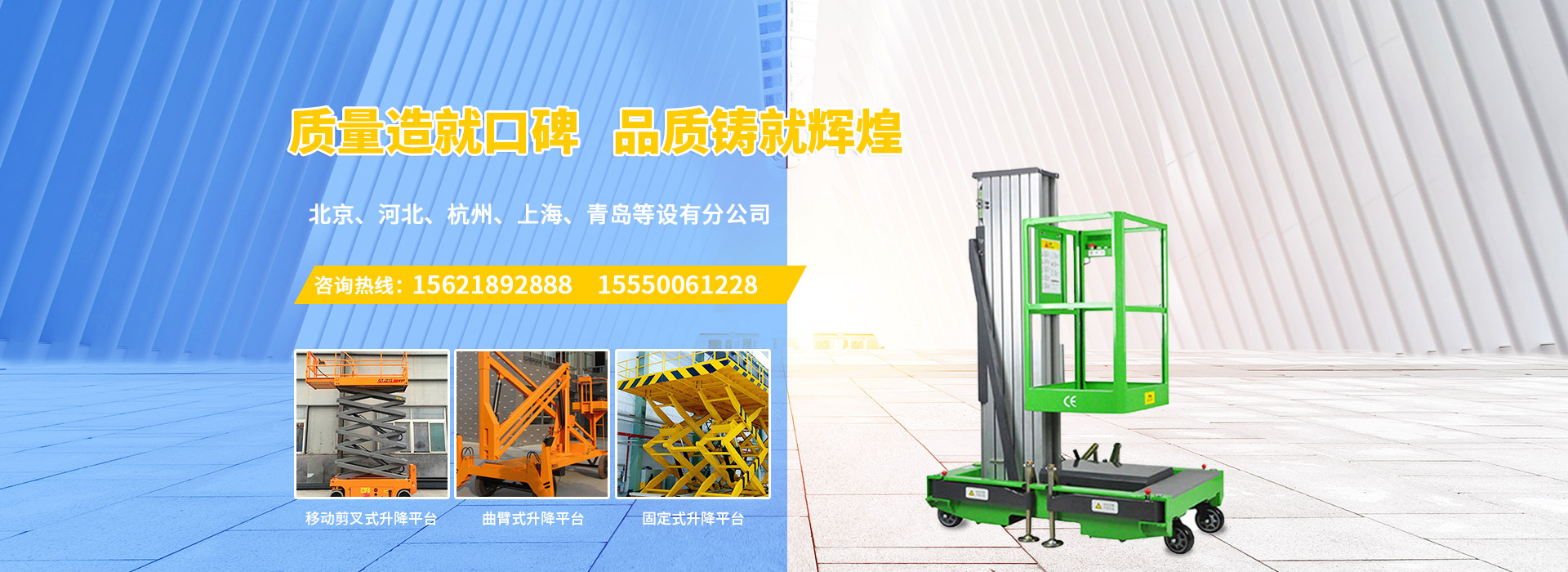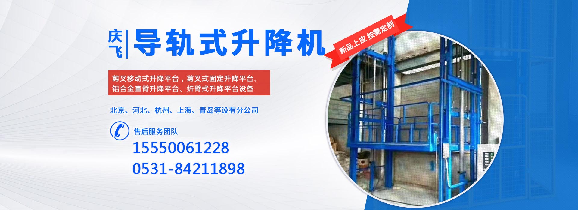 濟(jì)南慶飛機(jī)械設(shè)備有限公司目前專心致力于液壓升降平臺領(lǐng)域。公司主要產(chǎn)品有:剪叉移動式升降平臺,剪叉式固定升降平臺、鋁合金直臂升降平臺、折臂式升降平臺、曲臂式升降平臺、車載式升降平臺、牽引式升降平臺、自動行走式升降平臺、移動式固定式登車橋、桅柱式鋁合金升降平臺、鋁合金升降舞臺、固定軌道臺面旋轉(zhuǎn)式升降平臺等,產(chǎn)品廣泛適用于電力、通訊、路燈、交通、交警、建筑裝簧、園林、廣告、高速公路、大型廠礦企業(yè)等領(lǐng)域,還可根據(jù)用戶的需求設(shè)計制造包括特殊尺寸、承載能力、防爆電器的液壓升降臺。